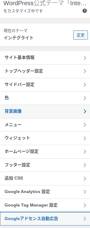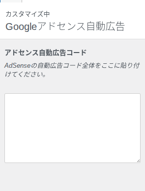 カスタマイザーのメニュー内に「Googleアドセンス自動広告」という項目があるのでクリック。