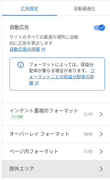 → AdSense側の編集から、除外したい箇所やページを指定することができます。※下記図の最下位