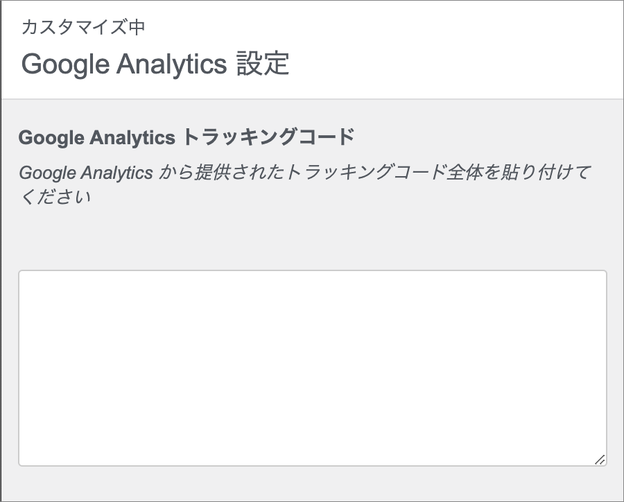 - WordPressの「外観」→「カスタマイズ」→Google Analytics設定 に移動
