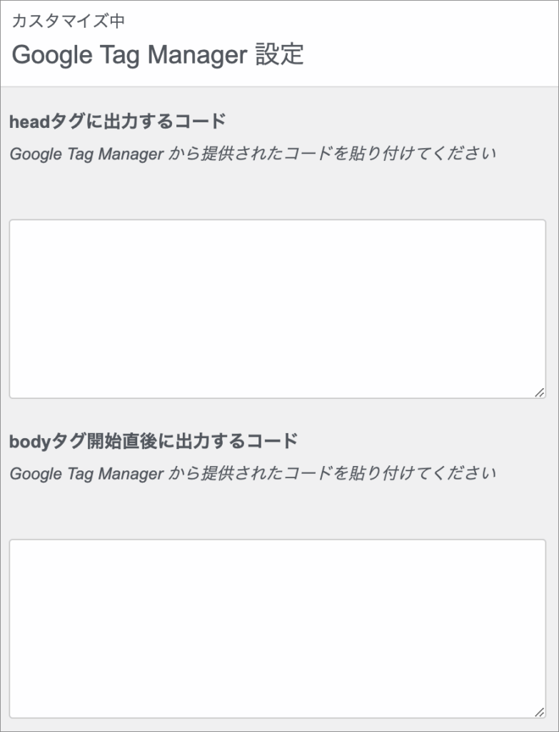 headタグに出力するコードに<script>〜</script>を貼る - 下の入力欄: