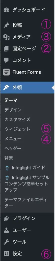 | 6 | その他の設定 | 一般設定、表示設定、パーマリンク設定など、サイト全体の動作に関わる設定を行います。 |