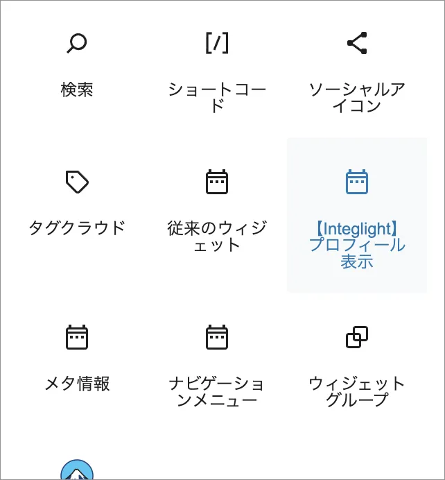 ステップ⑦ ブロックを追加 →【Integlight】プロフィール表示を選択