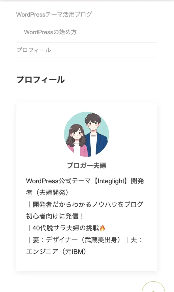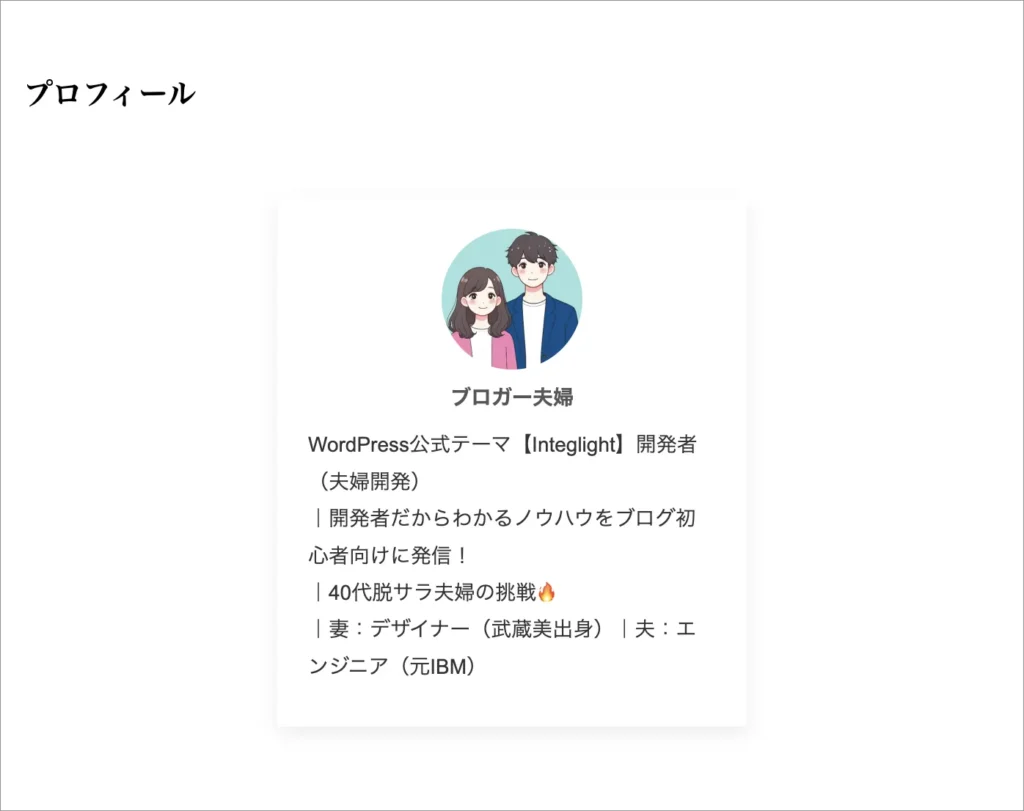 下記のようにプロフィールをサイドバーに設置することをゴールとして、設定を行なっていきます👇