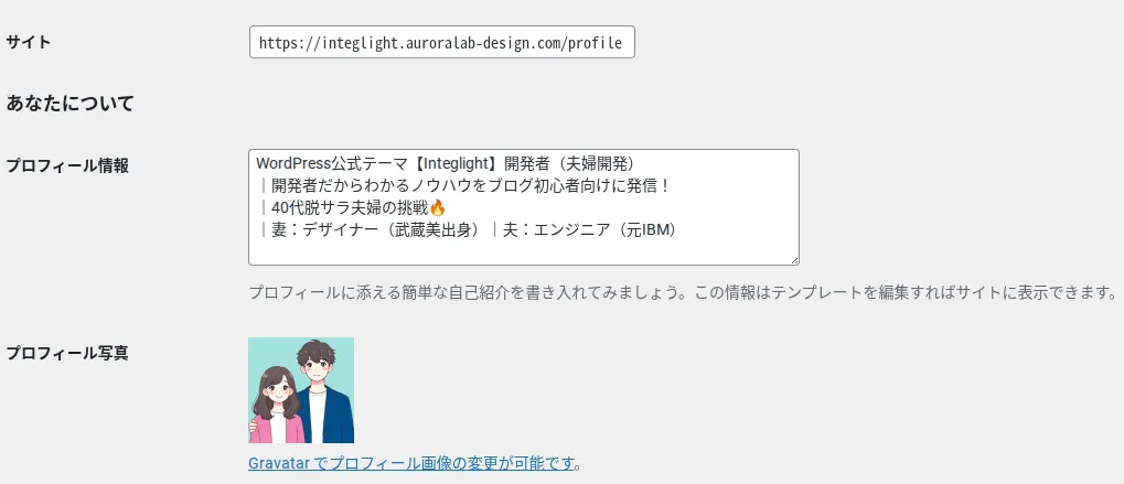 プロフィール写真は Gravatar と連携して設定できます。好きな画像を設定しましょう。